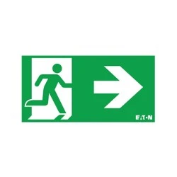 Piktogram PS25 125x250 człowiek w drzwiach strzałka prawo logo awex (ISO7010)