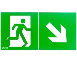 Piktogram PD27 150x300 strzałka w dół z prawej strony, człowiek w drzwiach logo awex (ISO7010)