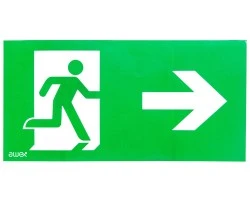 Piktogram PD25 150x300 strzałka w prawo człowiek w drzwiach logo awex (ISO7010)