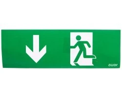 Piktogram PM26 100x300 strzałka dół człowiek w drzwiach logo awex (ISO7010)