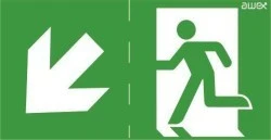 Piktogram PS26 125x250 strzałka dół człowiek w drzwiach logo awex (ISO7010)