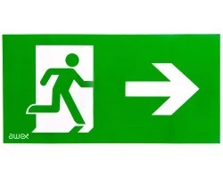 Piktogram PS25 125x250 człowiek w drzwiach strzałka prawo logo awex (ISO7010)