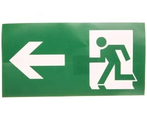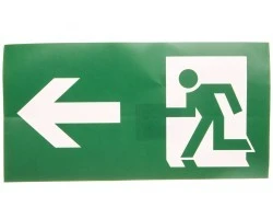 Piktogram PS24 125x250 strzałka lewo człowiek w drzwiach logo awex (ISO7010)