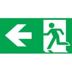 Piktogram PS24 125x250 strzałka lewo człowiek w drzwiach logo awex (ISO7010)