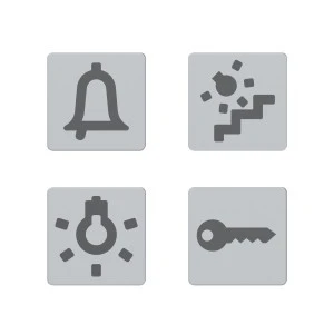 Piktogramy, zestaw soczewek do podświetlania urządzeń sterujących, z różnymi symbolami, np. światła, Dahlia GW35986