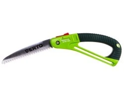 Piła ogrodowa VERTO ze składanym ostrzem. Bardzo przydatna podczas prac ogrodowych. Wydajne uzębienie 7 TPI usprawnia pracę narzędziem. Przycisk blokowania ostrza ułatwia składanie piły. Ergonomiczny uchwyt z tworzywa sztucznego pokryty antypoślizgowym materiałem zapewnia komfort i bezpieczeństwo podczas pracy. Specjalny kształt rękojeści chroni dłoń przed zranieniem.