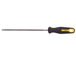 Pilnik TOPEX (nr ref. 06A788) przeznaczony do ostrzenia łańcuchów pił łańcuchowych. Wykonany z wysokiej jakości stali łożyskowej GCr15. Ergonomiczny uchwyt z tworzywa sztucznego, pokryty antypoślizgowym materiałem zapewnia wygodę i bezpieczeństwo podczas pracy. Marka TOPEX skierowana jest do majsterkowiczów.