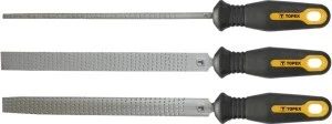 Pilniki do drewna TOPEX (nr ref. 06A330) przeznaczone do szlifowania drewna. Trzy uniwersalne kształty pozwalają na różnorodne zastosowanie. Ergonomiczny uchwyt pokryty antypoślizgowym materiałem zapewnia wygodę i bezpieczeństwo podczas pracy. Marka TOPEX skierowana jest do majsterkowiczów.