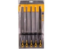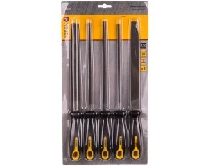 Pilniki do metalu TOPEX (nr ref. 06A250) przeznaczone do szlifowania metalu. Pięć uniwersalnych kształtów pozwala na różnorodne zastosowanie. Wykonane z wysokiej jakości stali T12. Ergonomiczny uchwyt pokryty antypoślizgowym materiałem zapewnia wygodę i bezpieczeństwo podczas pracy. Marka TOPEX skierowana jest do majsterkowiczów.