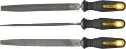 Pilniki do metalu TOPEX (nr ref. 06A230) przeznaczone do szlifowania metalu. Trzy uniwersalne kształty pozwalają na różnorodne zastosowanie. Wykonane z wysokiej jakości stali T12. Ergonomiczny uchwyt pokryty antypoślizgowym materiałem zapewnia wygodę i bezpieczeństwo podczas pracy. Marka TOPEX skierowana jest do majsterkowiczów.