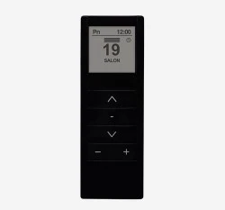 Pilot 19-sto kanałowy. Pilot wyposażony jest w czytelny, wyświetlacz graficzny pokazujący numer kanału oraz posiadający możliwość zapisania 16 znaków alfanumerycznych opisujących poszczególne pomieszczenia w obiekcie np. salon, sypialnia itp. Zastosowanie w pilocie zegara i kalendarza z funkcją astro umożliwia programowalną o dowolnych godzinach i dniach tygodnia zdalną obsługę rolet. Menu w czterech wersjach językowych: polskim, angielskim, niemieckim i francuskim. Występuje w dwóch wariantach kolorystycznych obudowy: białym i czarnym. Magnetyczna zawieszka zapewnia nowoczesny design i wygodę obsługi przy podnoszeniu i odkładaniu pilota. Zasilanie-bateria CR-2430.