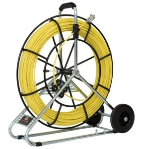 Włókno szklane fi 9 mm na stojaku wyposażone jest w tuleję początkową z gwintem RUNPOTEC fi RTG 6 oraz szeklę. Stojak posiada hamulec w postaci dźwigni do regulacji prędkości rozwijania włókna lub w celu całkowitego zablokowania kosza. Dodatkowo stojak posiada rolki służące do szybkiego rozwijania, a także automatyczny hamulec pozwalający utrzymać większą kontrolę podczas rozwijania i zwijaniu - nie ma wówczas zagrożenia na niekontrolowane samorozwinięcie się włókna. Stojak wyposażony jest również w licznik (z dokładnością do 10 cm) do wyznaczania odległości lub określania lokalizacji.