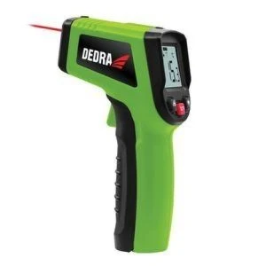 Pirometr/bezdotykowy termometr laserowy MC0951 do mierzenia temperatury różnych powierzchni. Pomiar jest szybki (czas odpowiedzi to 0.5 sekundy) i dokładny, odczyt na czytelnym wyświetlaczu LCD. Użytkownik może wybrać między dwoma skalami pomiaru: stopnie Celsjusza lub Fahrenheita. Zakres pomiaru wynosi od -50 do 600° Celsjusza lub od -58 do 1112° Fahrenheita. Pirometr DEDRA generuje wiązkę lasera II klasy. Wrażliwość widmowa w zakresie 8-14um. Urządzenie może pracować przy wilgotności względnej od 10 do 40% RH. Zasilanie popularnymi bateriami AAA (2szt.).