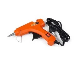 Pistolet do klejenia służy do klejenia różnych twardych materiałów - naturalnych lub syntetycznych (drewno, plastik, karton, szkło, ceramika, kamień, tkanina, korek, skóra, metal). Stosowany do uszczelniania szczelin i pęknięć konstrukcyjnych. Dysza z zaworem kulowym zapobiega późniejszemu uwalnianiu kropel kleju. Utrzymanie temperatury kleju na stałym poziomie zapobiega twardnieniu kleju. Druciana pałąk i powierzchnia uchwytu na rękojeści zapewniają doskonałą stabilność narzędzia. Nadaje się do stosowania z prętami o średnicy 8 mm. Wyposażony w włącznik/wyłącznik.