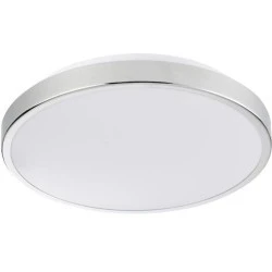 Nowoczesny PLAFON LED o średnicy 30 cm serii KERN marki POLUX w kolorze białym-chromie o wysokowydajnym, energooszczędnym źródle światła LED o mocy 15W i strumieniu świetlnym 900lm. Lampa wyposażona została w diody LED, która rzuca łagodne refleksy i zapewnia równomiernie rozpraszające się światło, dzięki czemu niweluje negatywny efekt olśnienia.