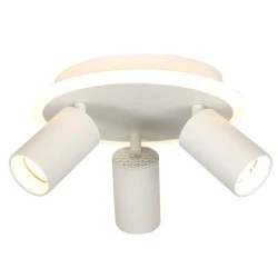 Plafon Parma 3 jest wykonany z metalu w białym kolorze. Posiada trzy ruchome reflektorki z możliwością wymiany obręczy. Do wyboru mamy białe lub złote obręcze (obie wersje znajdują się w zestawie). Dodatkowo reflektory posiadaja regulację kąta nachylenia co sprawia, że można ustawić kierunek padania światła dokładnie w wymaganym kierunku, np. na biurko. Reflektorki posiadają miejsce na żarówki o gwincie GU10 oraz wbudowane światło LED o zmiennej barwie światła CCT, co oznacza że można ustawić dowolną barwę światła od ciepłej poprzez neutralną, aż po zimną. Barwę światła ustawia się przed montażem w podsufitce lampy.