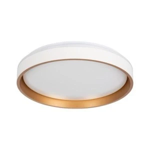 Plafoniera LED, Średnica [mm]: 380, Wysokość [mm]: 75, Barwa światła: biała, Częstotliwość znamionowa [Hz]: 50, Ilość cykli wł/wył: ≥20000, Jednolitość barw [SDCM]: 6, Kąt świecenia [°]: 120, Klasa ochronności przed porażeniem elektrycznym: I, Kolor: biały / złoty, Materiał klosza: tworzywo sztuczne, Materiał obudowy: metal, Miejsce montażu: do nadbudowania na suficie, Miejsce zastosowania: wewnątrz, Minimalna odległość od oświetlanego obiektu: 0,5m, Moc maksymalna [W]: 17,5, Możliwość współpracy ze ściemniaczem: nie, Napięcie znamionowe [V]: 220-240 AC, Rodzaj diody: LED SMD, Rodzaj przyłącza: kostka śrubowa, Skuteczność świetlna lampy [lm/W]: 54, Stopień IP: 20, Strumień świetlny oprawy [lm]: 945, Temperatura barwowa [K]: 4000, Trwałość [h]: 25000, Współczynnik oddawania barw Ra: 80, Zakres przekrojów stosowanych przewodów [mm2]: 1,5, Zakres temperatury otoczenia, na którą może być narażony wyrób [°C]: 5÷25,