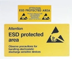 Zgodność z normą BS EN 61340-5-1. Sztywny plakat. Grubość = 3 mm
