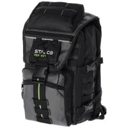 Plecak narzędziowy "PNP28" jest profesjonalnym akcesorium przydatnym przy pracach monterskich i serwisowych. Został wykonany z trwałej i dodatkowo wzmocnionej tkaniny poliestrowej. Jest odporny na uszkodzenia mechaniczne i łatwy w utrzymaniu czystości. Został podzielony na 4 zewnętrzne kieszenie, co ułatwia rozdzielenie w nim potrzebnych przedmiotów. Wewnątrz znajduje się dodatkowa kieszeń na laptopa i 18 mniejszych przegródek do przechowywania akcesoriów roboczych. Plecak jest nie tylko funkcjonalny, ale także wygodny dla użytkownika. W górnej części znajduje się mocny uchwyt do noszenia plecaka w dłoni. Profilowane pasy nośne o ergonomicznym kształcie mają system precyzyjnej regulacji. Na komfort użytkowania plecaka wpływa dodatkowy regulowany pas piersiowy, a także system miękkich oddychających poduszek na plecach. Elementy odblaskowe zapewniają większą widoczność po zmierzchu i poprawiają bezpieczeństwo użytkownika.