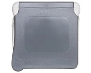 PLEXO55 Gniazdo pojedyncze z/u 16A z klapką szare IP55 z ramką montażową 069831