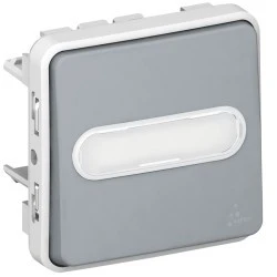 PLEXO55 Przycisk podświetlany przełączny 10A 250V z z uchwytem etykiety szary 069544