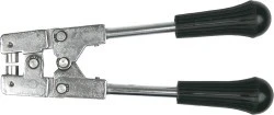 Plombownica TOPEX (nr ref. 90U256) o długości 17 cm. Przeznaczona do zaciskania plomb ołowianych lub plastikowych na drutach, żyłkach i niciach plombowniczych. Ergonomiczne rękojeści ułatwiają pracę narzędziem. Marka TOPEX skierowana jest do majsterkowiczów.