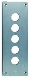 Płyta czołowa z nawiertami, XAP-E, metalowa, 5 otworów poziom.. rodzina produktów: Harmony XAP - typ produktu: płyta czołowa ze śrubami mocującymi - opis skrócony: XAPE - rozmiar płyty czołowej produktu: 72 x 204 mm - montaż produktu: montaż podtynkowy - stopień ochrony IP: IP65 zgodnie z IEC 60529, IP657 zgodnie z NF C 20-010 - odporność na czynniki chemiczne: odporny na aceton, odporny na alkohole, odporny na kwasy organiczne, odporny na oleje i ropę naftową, odporny na rozcieńczone kwasy mineralne, odporny na roztwory chlorków i fluorków, odporny na sole. Zalety: W centrum wydarzeń. Ta rodzina przemysłowych obudów IP 67 łączy prostą instalację, elastyczność konfiguracji i wytrzymałą konstrukcję. Przy połączeniu z metalowymi przyciskami i diodami LED z rodziny Harmony, obudowy te znakomicie nadają się do pełnienia typowych funkcji dialogu operatorskiego.... Zastosowanie: - Przemysł: producenci maszyn (motoryzacja, tekstylia, przemysł drzewny), Sektor usługowy i infrastruktura: rozdział energii, prace publiczne, budownictwo, lotniska..