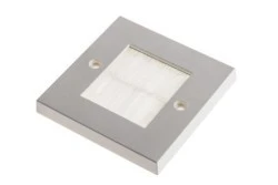 Płyta szczotki, pojedynczy ganek, biała. Ta RS z pojedynczą końcówką szczotkową jest przeznaczona do montażu standardowych elektrycznych puszek elektrycznych w Wielkiej Brytanii. Płytę szczotki można również przykręcić bezpośrednio do ściany. Otwór płytki szczotki jest wystarczająco duży, aby umożliwić przechodzenie większości kabli. RS z pojedynczą szczotką jest idealnym rozwiązaniem do zastąpienia drogich płyt ściennych do prowadzenia kabli AV przez ścianę. Biała płytka i szczotki Pojedyncza ścieżka Pasuje do tylnego pudełka lub może być przykręcony bezpośrednio do ściany Idealny do przeciągania kabli AV przez ścianę Schludne i profesjonalne wykończenie zapewnia mniej więcej ciętych otworów
