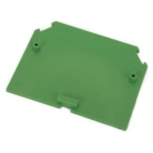 Płytka krańcowa dedykowana do złączek śrubowych RSA w kolorze zielonym i klasie palności V2 to element izolacyjny wykonany z tworzywa sztucznego, który jest przeznaczony do zamykania końcowych otworów w zestawach złączek śrubowych. Płytka zaprojektowana do dokładnego dopasowania do kształtu złączek, co zapewnia wysoką skuteczność w izolacji termicznej i akustycznej. Dodatkowo, dzięki swojej klasie palności V2, materiał użyty do produkcji ścianki końcowej jest trudnopalny i odporny na płomienie, co zwiększa bezpieczeństwo użytkowania.