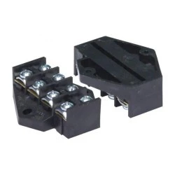 Płytka odgałęźna 4 torowa, do mocowania kabla 10,0 mm2, służy do tworzenia połączeń elektrycznych w instalacjach pomiędzy przewodami, a różnymi aparatami, urządzeniami i maszynami. Można zabudować je w puszkach łączeniowych, skrzynkach elektrycznych, etc. Produkt wykonany z tworzywa sztucznego w kolorze czarnym.