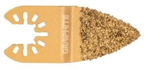 Płytka ścierna do urządzenia wielofunkcyjnego, do szlifowania ceramiki GRAPHITE (nr ref. 56H065) o średnicy 76 mm posiada nasyp z węglika wolframu. Pozwala na precyzyjne cięcie płytek ściennych po linii prostej oraz usuwanie fug przy pomocy multinarzędzia GRAPHITE.