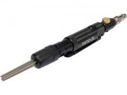 Mini młotek igłowy przeznaczony do czyszczenia rdzy, spawów i prac blacharskich. Kompaktowe rozmiary pozwalają na precyzyjną pracę w załomach. Zawór regulacyjny pozwala na dostosowanie częstotliwości uderzeń. Możliwość ustawienia kierunku wylotu powietrza zwiększa komfort pracy użytkownika.