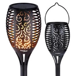 Pochodnia LED lampa solarna zasilana energią słoneczną z wbudowanym akumulatorem. Delikatne ciepłe światło LED, imitujące ruchomy płomień ognia (ogień pochodni sprawia wrażenie ruchomego, podmuchami wiatru).