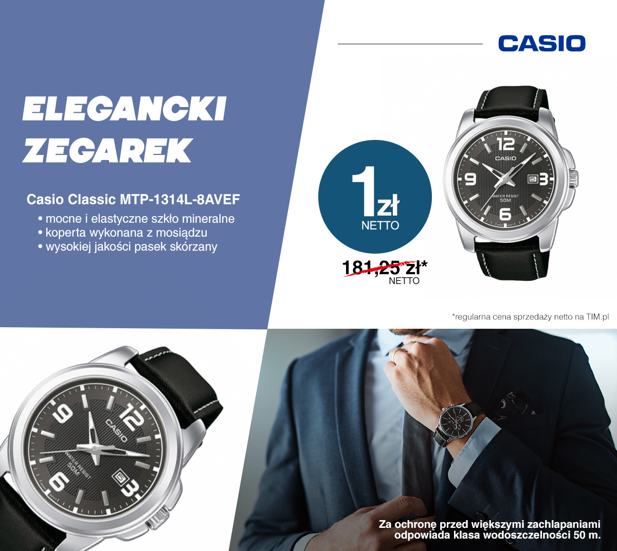 Kupuj produkty serii Aquaclick marki KONTAKT-SIMON na kwotę powyżej 1199 zł netto, a otrzymasz Casio Classic MTP-1314L-8AVEF za 1 zł netto.