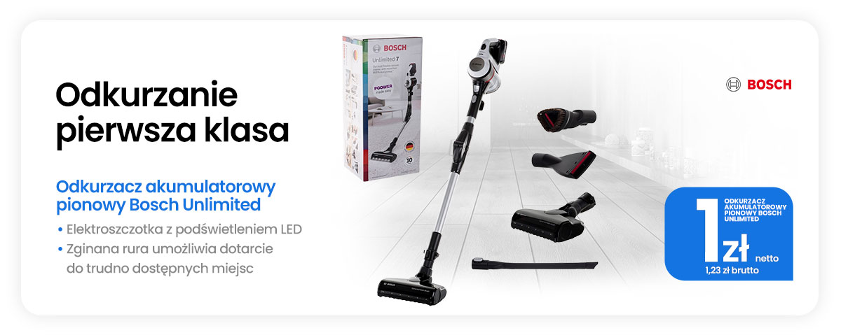 Kup w ramach pojedynczego zamówienia produkty marki EATON na kwotę powyżej 9 999 zł netto, a otrzymasz Odkurzacz akumulatorowy pionowy Bosch Unlimited za 1 zł netto.