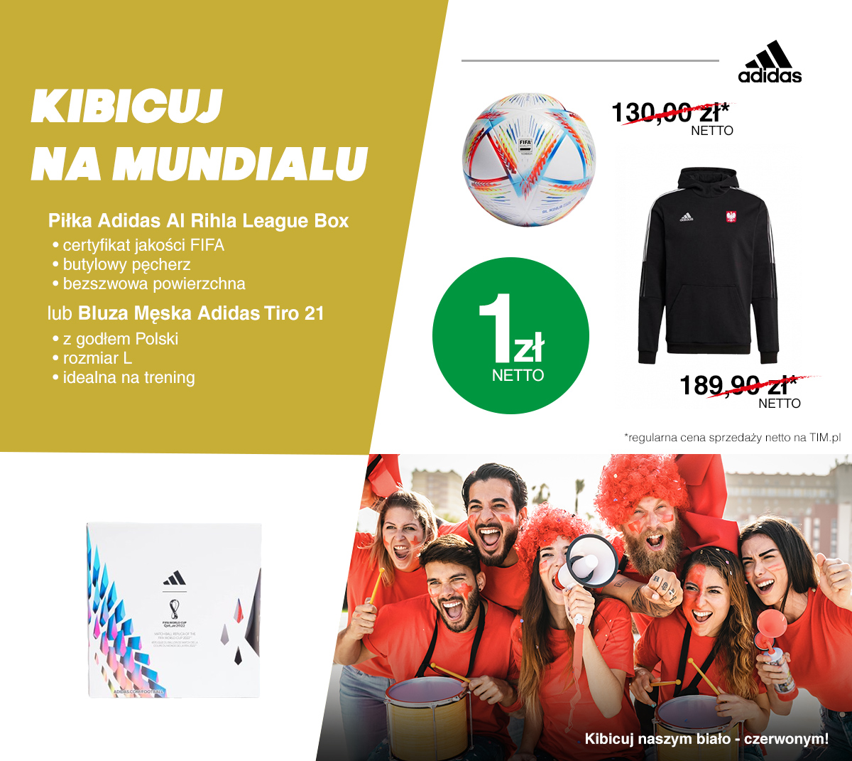 Kupuj produkty marki F&F na kwotę w przedziale 1999 - 3299 zł netto, a otrzymasz Piłka ADIDAS AL RIHLA LEAGUE BOX lub na kwotę powyżej 3299 zł netto, a otrzymasz Bluza Męska Adidas Tiro 21 Polska rozmiar L za 1 zł netto.