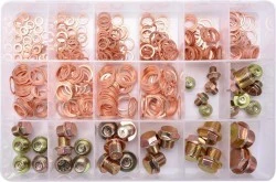 - ZESTAW 534 SZTUK PODKŁADEK MIEDZIANYCH I KORKÓW SPUSTOWYCH DO OLEJU.