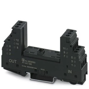 Podstawa dla wtyków zabezpieczających PT z obwodem zabezpieczającym dla 4 przewodów jednostronnie uziemionych obwodów sygnałowych, mostek pomiędzy przyłączami 3-4 (GND) i 9-10, montaż na szynie NS 35/7,5 i NS 35/15, szerokość obudowy: 17,5 mm
