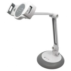 Statyw Techly ICA-TBL 165, P/N: 106817 – Uniwersalny Uchwyt Stojak Biurkowy do Tabletu 4” - 10” z Pełną Regulacją Obrotu, Nachylenia i Skrętu, Metalowa Podstawka, Biały