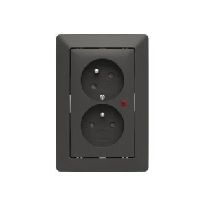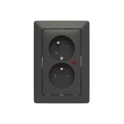 Podwójne, osobne gniazdo z ramką z zab. przeciwprzepięciowym ZONI czarny matowy / biały 5593T‑C02357 137 2CHT922357C4137