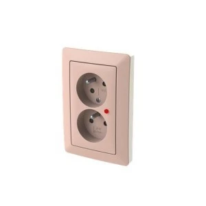 Podwójne, osobne gniazdo z ramką z zab. przeciwprzepięciowym ZONI pudrowy beżowy 5593T‑C02357 142 2CHT922357C4142
