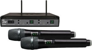 Podwójny wieloczęstotliwościowy zestaw mikrofonu bezprzewodowego UHF PLL W skład zestawu wchodzą: · Podwójny odbiornik E-7DU/5 · Dwa mikrofony doręczne, pojemnościowe z nadajnikiem E-7THD/5 Szczegółowa specyfikacja w opisie poszczególnych produktów. Wymaga licencji w niektórych krajach UE! Typ urządzenia UHF PLL audio transmission set Częstotliwość nośna 506-542 MHz Pasmo przenoszenia 40-18 000 Hz Kanały wejściowe 2 THD < 0.6 % Dynamika > 100 dB Czas pracy > 25 h Dopuszcz. temp. otoczenia 0-40 °C Nadajnik, zasilanie 2 x batt. AA size, alkaline (not supplied) Odbiornik, wyjścia audio 180 mV jack Odbiornik, zasilanie via encl. power supply Odbiornik, szerokość 221 mm Odbiornik, wysokość 40 mm Odbiornik, głębokość 152 mm Odbiornik, złącza 1 x 6.3 mm jack, bal. Waga netto 0.955 kg