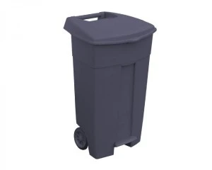 MERIDA KJS405 to pojemnik o dużej pojemności 120 litrów, wykonany z trwałego tworzywa PP w kolorze szarym. Wyposażony jest w pedał mechaniczny umożliwiający otwarcie pokrywy bez użycia rąk, co zwiększa higienę użytkowania. Produkt posiada dwa wymienne kółka transportowe oraz wymienną pokrywę, co ułatwia serwis i użytkowanie.