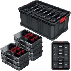 Wygodny i użyteczny pojemnik o wymiarach 294x194x60mm, który można zastosować do przechowywania małych akcesoriów oraz narzędzi. Dzięki ruchomym przegrodom jest bardzo praktyczny i umożliwia segregacje według indywidualnych potrzeb. Sprawdza się idealnie dla przechowywania małych elementów, drobnego osprzętu i różnych materiałów eksploatacyjnych.