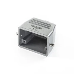 Obudowa metalowa złącz przemysłowych odlewana ciśnieniowo, z powierzchnią malowaną pokryciem elektrostatycznym.
