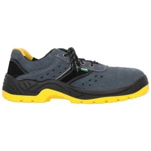 Obuwie robocze Service O1 ma ciekawy wygląd z kontrastującymi popielatymi i żółtymi elementami. Zastosowano tu skórę naturalną zamszową. Dzięki niej buty mają delikatną i przyjemną w dotyku strukturę. Są bardziej podatne na zabrudzenia lub uszkodzenia, dlatego nie zaleca się ich do ciężkich prac w przemyśle i na zewnątrz budynków.