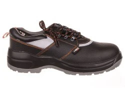 Półbuty robocze, skórzane, rozmiar 44, CE, metalowy podnosek (odporność na uderzenie 200J), antypoślizgowa, dwumateriałowa podeszwa, metalowa wkładka antyprzebiciowa, odblaskowe elementy, amortyzator drgań