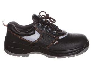 Półbuty robocze, skórzane, rozmiar 45, CE, metalowy podnosek (odporność na uderzenie 200J), antypoślizgowa, dwumateriałowa podeszwa, metalowa wkładka antyprzebiciowa, odblaskowe elementy, amortyzator drgań