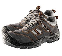 Półbuty robocze, zamszowe, rozmiar 41, CE, metalowy podnosek (odporność na uderzenie 200J), antypoślizgowa, dwumateriałowa podeszwa, metalowa wkładka antyprzebiciowa, oddychający materiał, amortyzator drgań