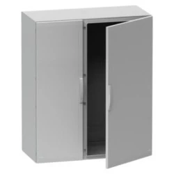 Podłogowa obudowa poliestrowa firmy Schneider Electric o numerze katalogowym NSYPLA10103G i wymiarach 1000x1000x320mm (szer.x wys.x gł.). Podwójne drzwi pełne. Instalacja wewnątrz pomieszczeń. Do użytku zewnętrznego należy dodatkowo zainstalować daszek. Obudowy z serii Thalassa PLA wykonane są z poliestru wzmocnionego włóknem szklanym, formowane na gorąco. Charakteryzują się wysoką odpornością na korozję, w trudnych warunkach zachowują swoje właściwości mechaniczne i izolacyjne. W standardzie wyposażone są w klamkę z 5 mm blokadą z podwójnym prętem. Drzwi otwierają się do 120°. Ich stopień ochrony to IP65 zgodnie z IEC 60529. Obudowy są w kolorze szarym RAL7035. Elementy szaf mają doskonałe wykończenie po obu stronach i mogą zawierać liczne otwory na wkładki i akcesoria montażowe lub do prowadzenia kabli. Etykieta Green Premium jest zobowiązaniem firmy Schneider Electric do dostarczania produktów o najwyższej w swojej klasie ekologiczności. Green Premium obiecuje zgodność z najnowszymi przepisami, przejrzystość w zakresie wpływu na śr odowisko, a także produkty o obiegu zamkniętym i niskiej emisji CO2.